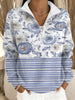 Urocza niebieska bluza ze stójką w kwiaty i paski