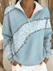 Damska stylowa niebieska bluza z cekinami z cekinami i kołnierzykiem