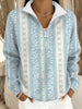Retro Western Highway tekstura wzór z nadrukiem Village V-Neck Koszula z długim rękawem w stylu Henry