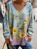 Retro Western Highway tekstura wzór z nadrukiem Village V-Neck Koszula z długim rękawem w stylu Henry