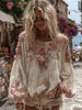 Damski vintage kwiatowy nadruk na co dzień luźny top