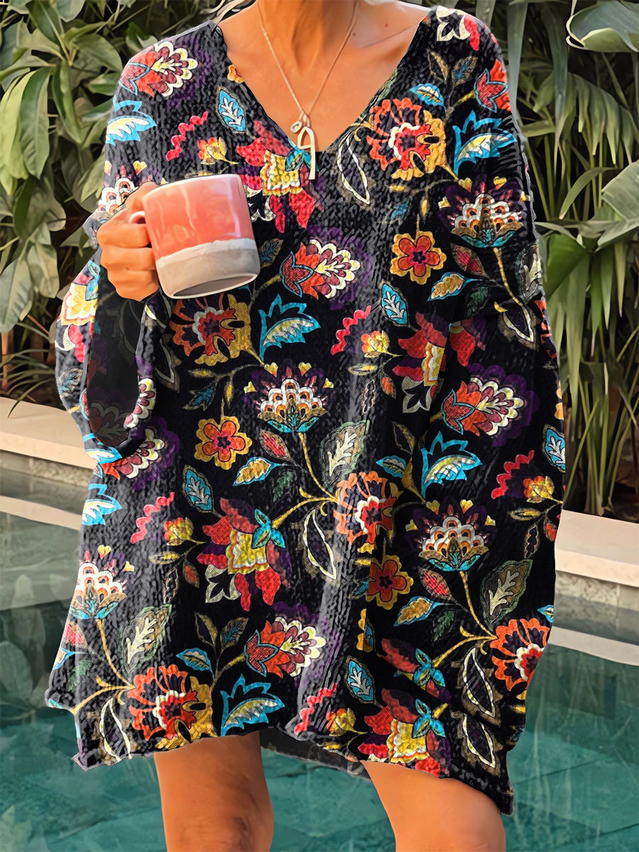 Damski sweter z dekoltem w kwiaty w stylu vintage