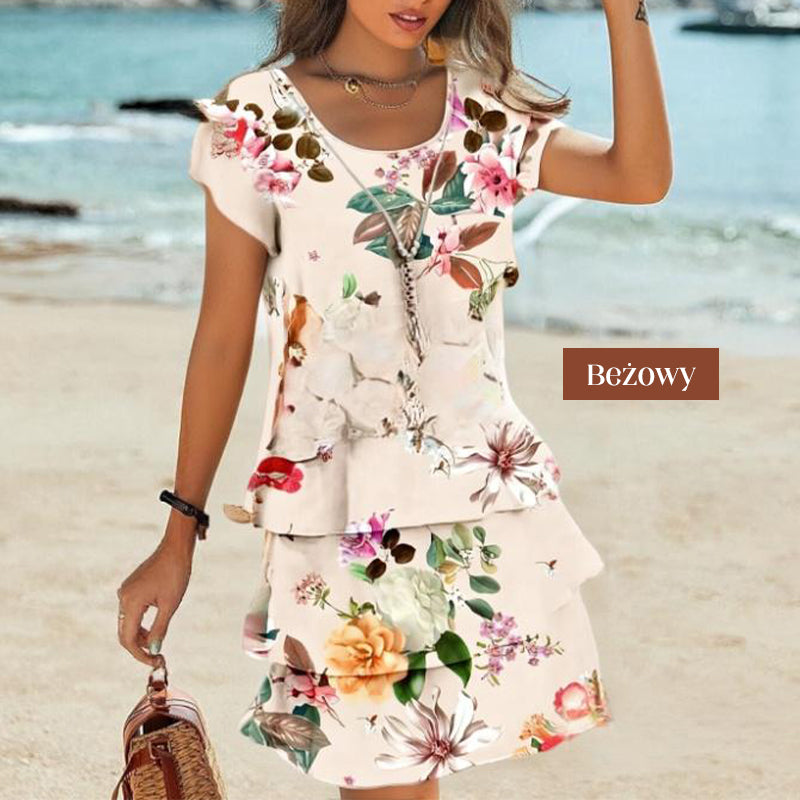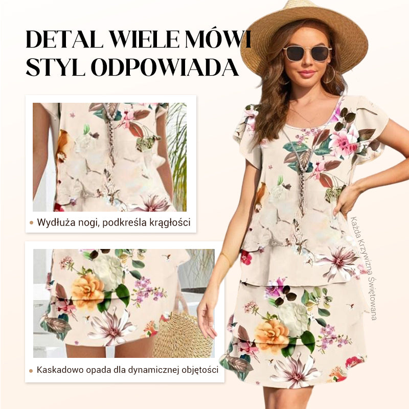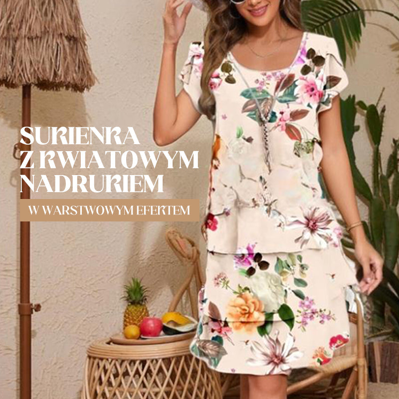 Sukienka z Roślinami i Kwiatowym Nadrukiem w Warstwowym Efektem